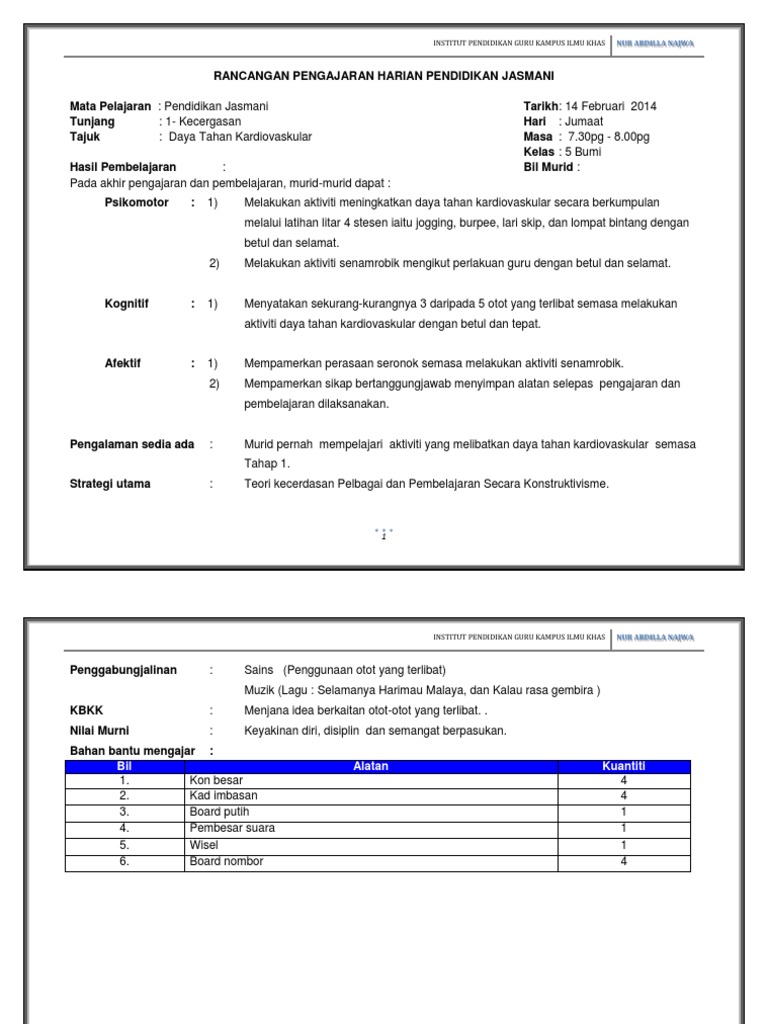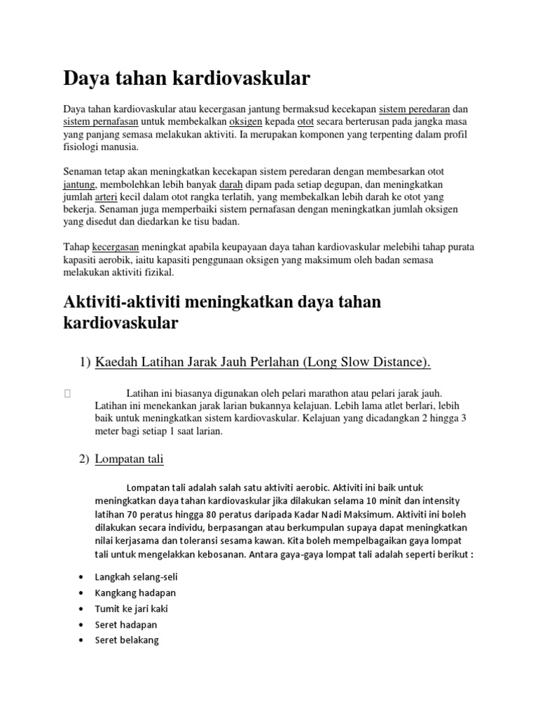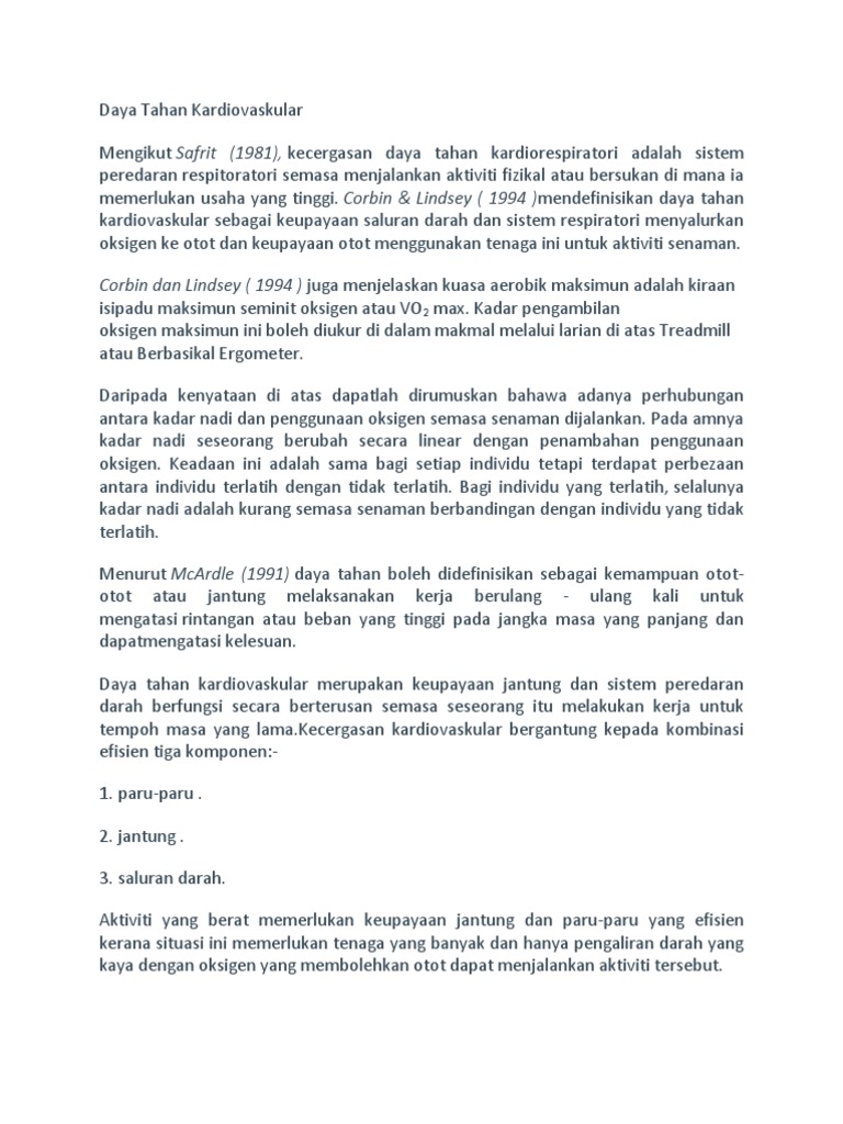 Sukan Permainan Daya Tahan Kardiovaskular Pdf